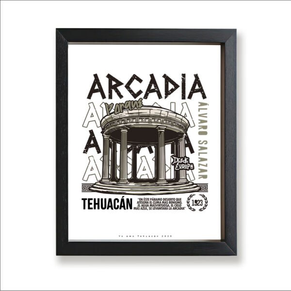 Celebra el orgullo local con nuestro cuadro decorativo de diseño original inspirado en La Arcadia, uno de los sitios más emblemáticos y queridos de Tehuacán.