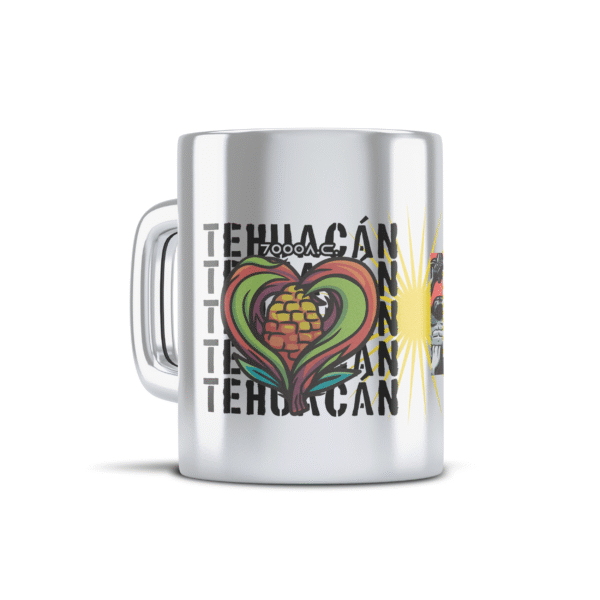 Taza de cerámica con acabado espejo color plata, edición especial y emisión única, un homenaje visual a la tierra fértil: la cuna del maíz