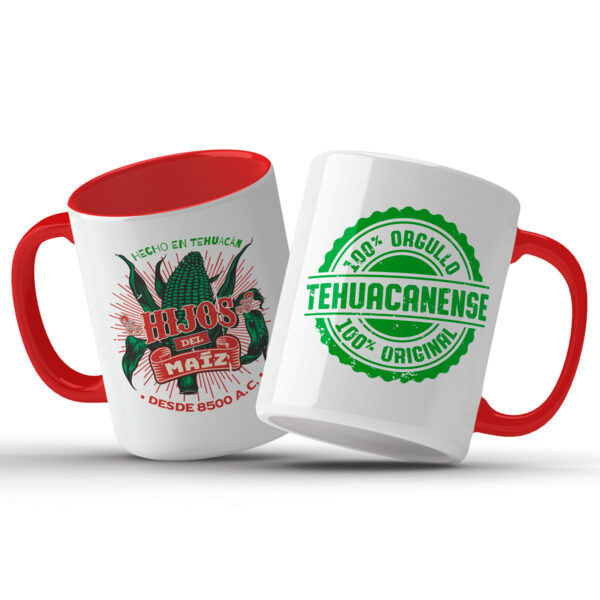 Esta hermosa taza de cerámica blanca con el interior y asa en un rojo profundo es más que un objeto: es un símbolo del origen. Su diseño original, titulado “Los Hijos del Maíz”, rinde homenaje a Tehuacán, reconocida como la cuna del maíz, donde comenzó una historia milenaria de cultivo, cultura y alimento.