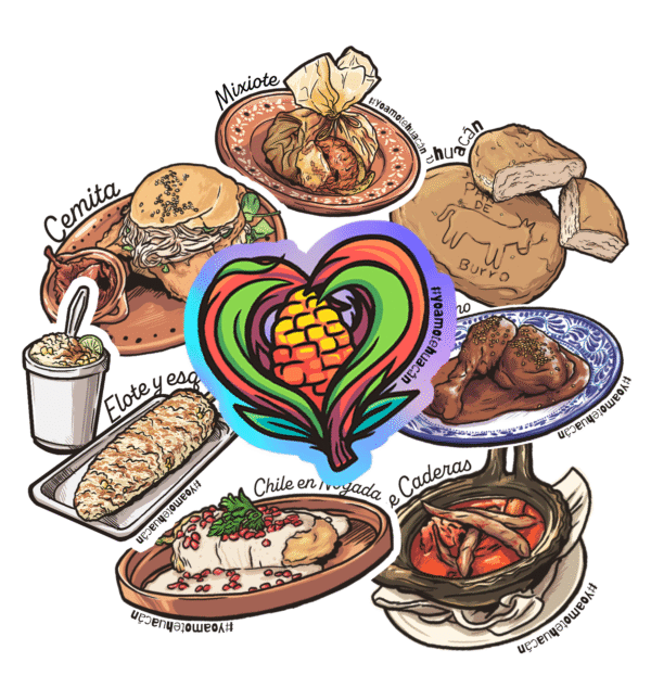 Este paquete de 7 stickers celebra lo mejor de la gastronomía típica de Tehuacán con ilustraciones originales de delicias como la cemita, el elote, los esquites, el muégano, el mole de caderas y más.